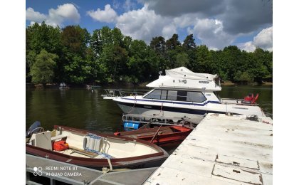 Prodám velkou obytnou loď Carver 26 flybridge, 8,9 x 2,9m. Motorizace Volvo Penta 7,4m3. Elektrický záchod, fekální nádrž, nádrž na pitnou vodu 120l, příďový propeler, velký úložný prostor. Pravidelně servisovaná, zet noha repasovaná. Loď lze využít jako hausbót/ bydlení na vodě. Jen vážní zájemci