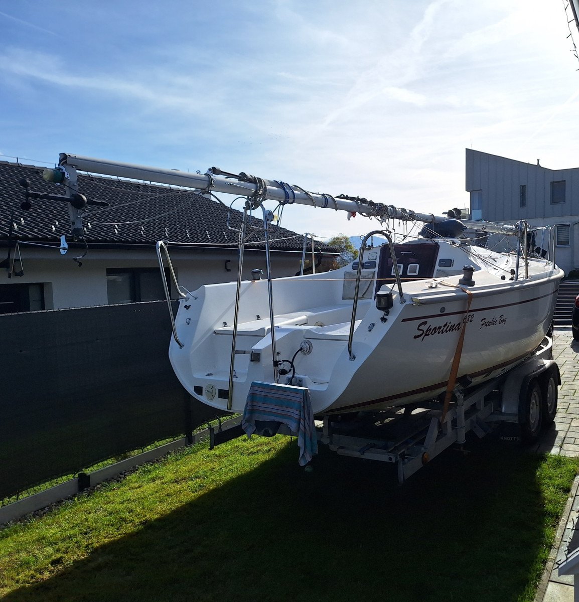 Predám plachetnicu Sportina 682, na značkách registrovanú. Výbava plavidla: Kosatka, hlavná plachta, gena, lazybag, rolfock, kotva, palubné osvetlenie, 2 batérie, elektronický hĺbkomer / rýchlomer / kompas / vetromer, zabudované WC, nástupné schodíky, solárne/motorové dobíjanie, „mŕtvy muž“, rozvod vody - umývadlo, liehový varič, sieťky na otvoroch, nádrž na palivo, 3 ks fendre, interiér z dubu na zákazku, antifóling, rádio SONY s BTH, prípojka 220V, záchranné prostriedky.