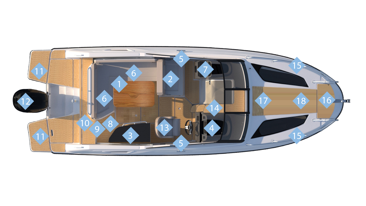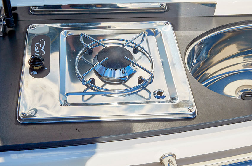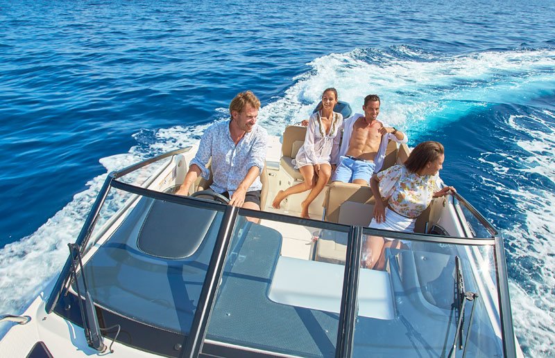 - Kokpit komfort balík : Kokpit sprcha , Tyč na ťahanie lyžiara, Chladnička, Kuchynka s drezom a varičom LPG, kokpit slnečný matrac,stierač, teakový stolík , kokpit LED osvetlenie-osvetlenie držiakov pohárov a podlahové osvetlenie